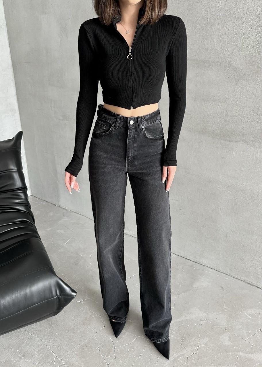Antrasit Yıkamalı Wideleg Jean