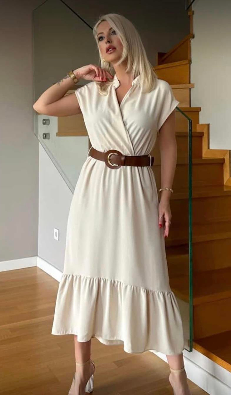 - %60 Polyester %35 Viskon %5 Licra - Viskon Kumaş - Beli Lastikli , Kemer Detaylı - Hakim Yakalı - Normal Kalıp, Premium Kalite