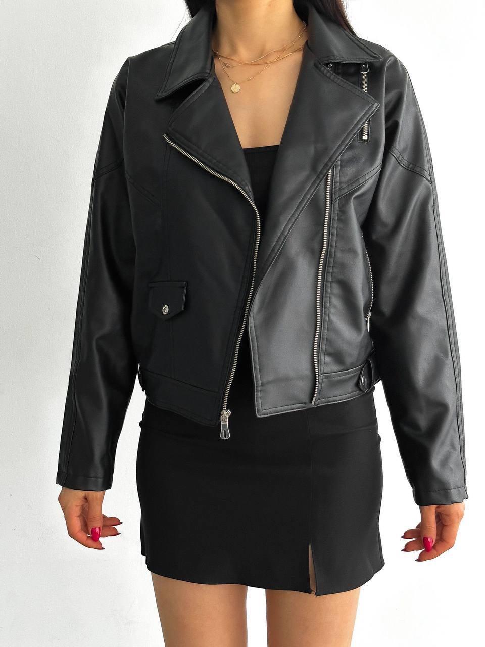 - %90 Polyester %10 Elastan - Suni Deri Kumaş - Fermuar Detayiı - Normal Kalıp
