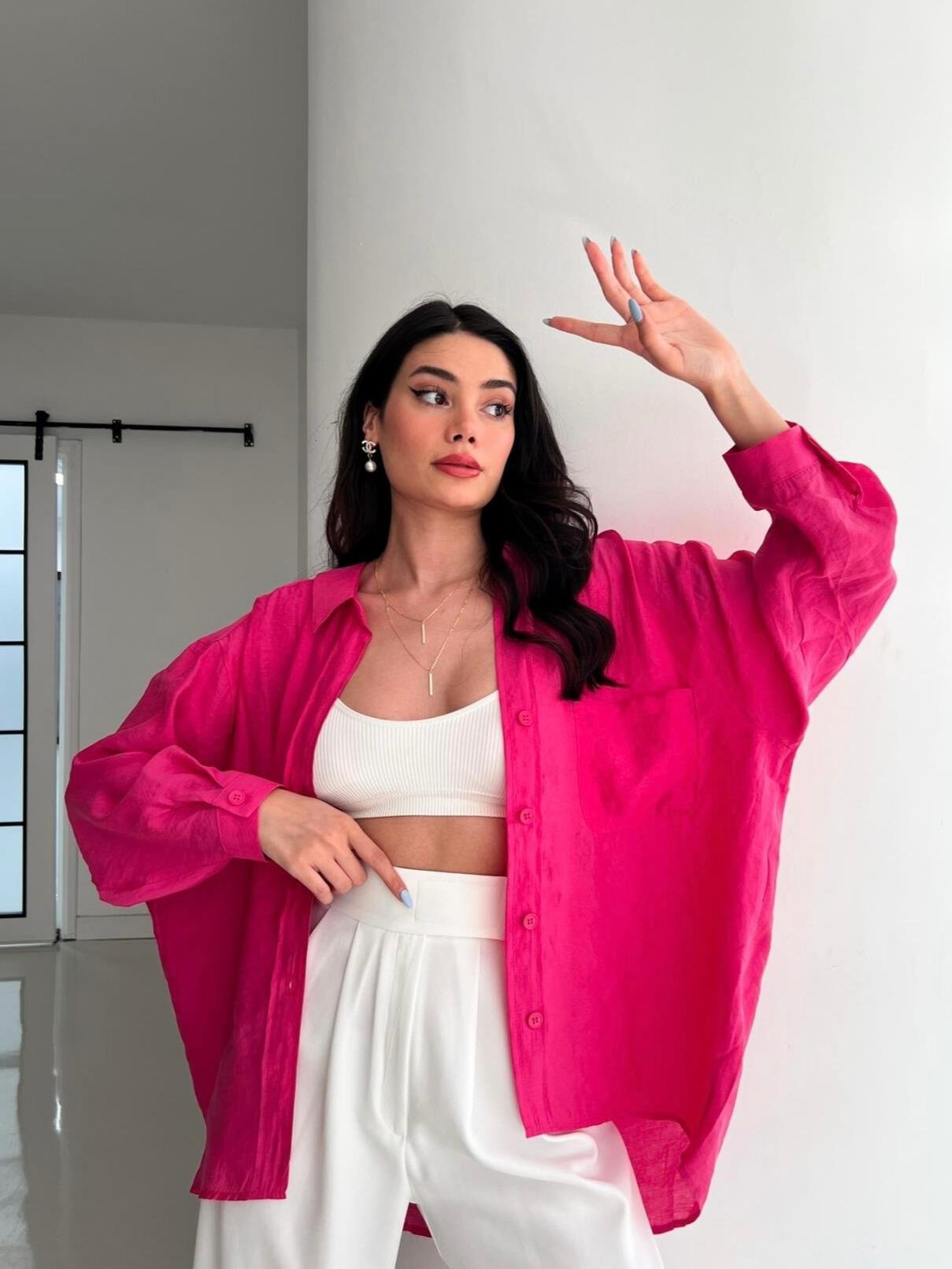 Fuşya Düşük Omuzlu Oversize Gömlek