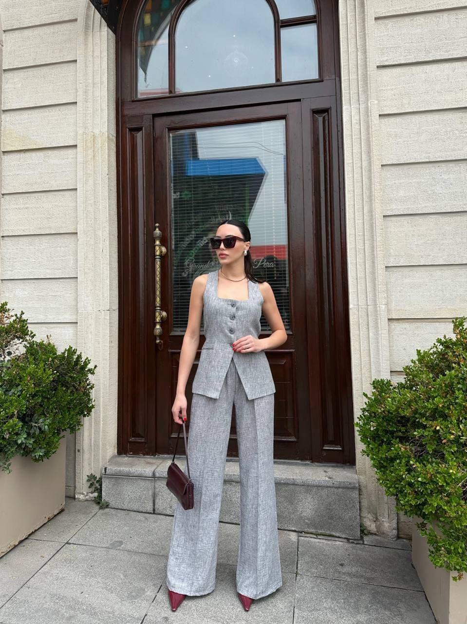Astarlı Yelek ve Beli Lastikli Pantolon Takım