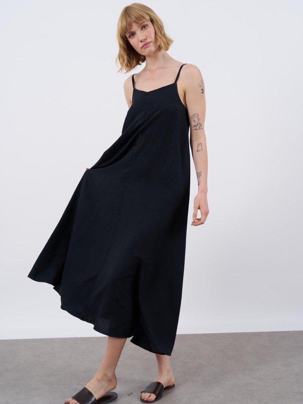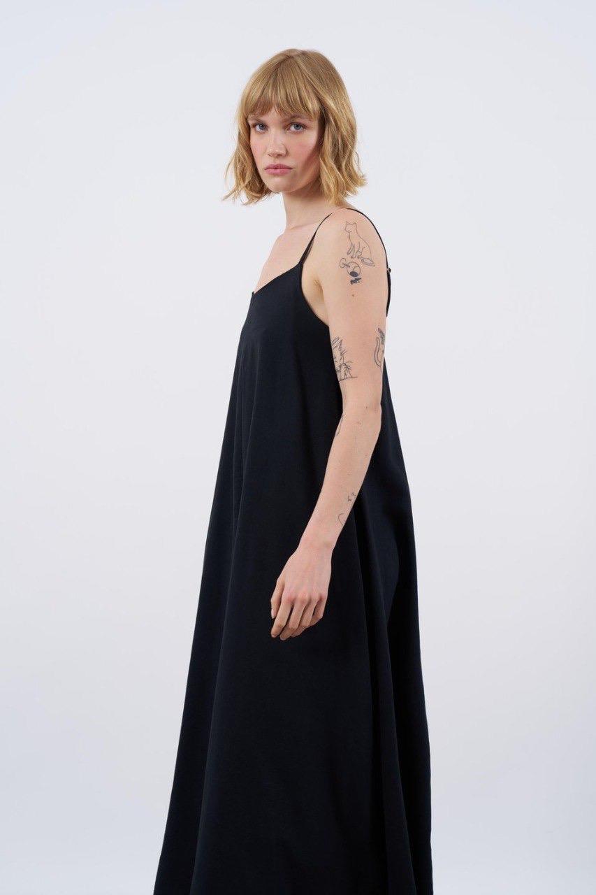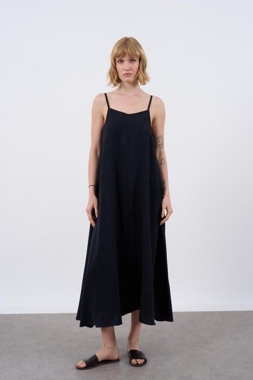 Premium Ayarlanabilir İp Askılı Salaş Siyah Elbise