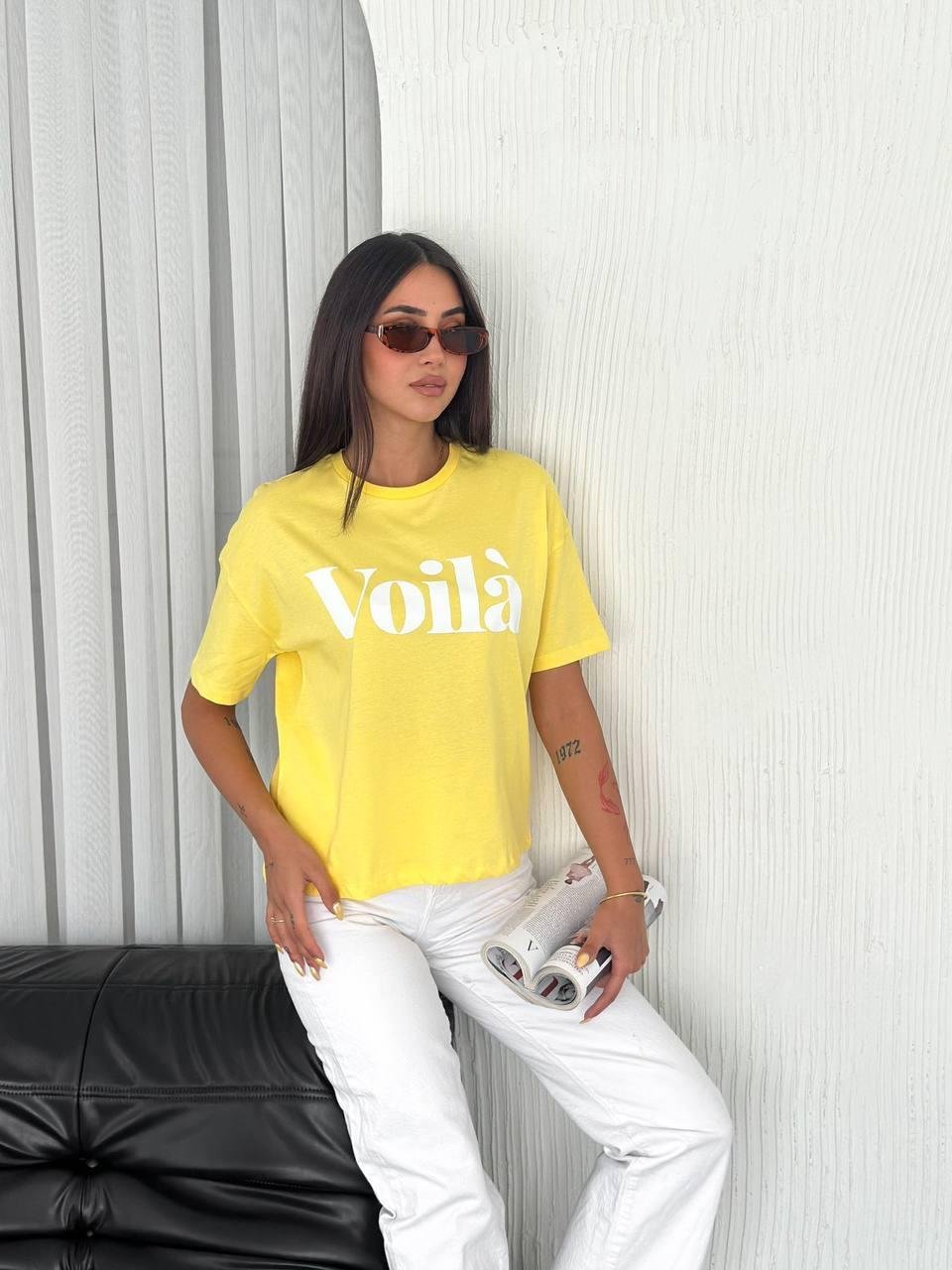 Sarı Voila Baskılı T-Shirt